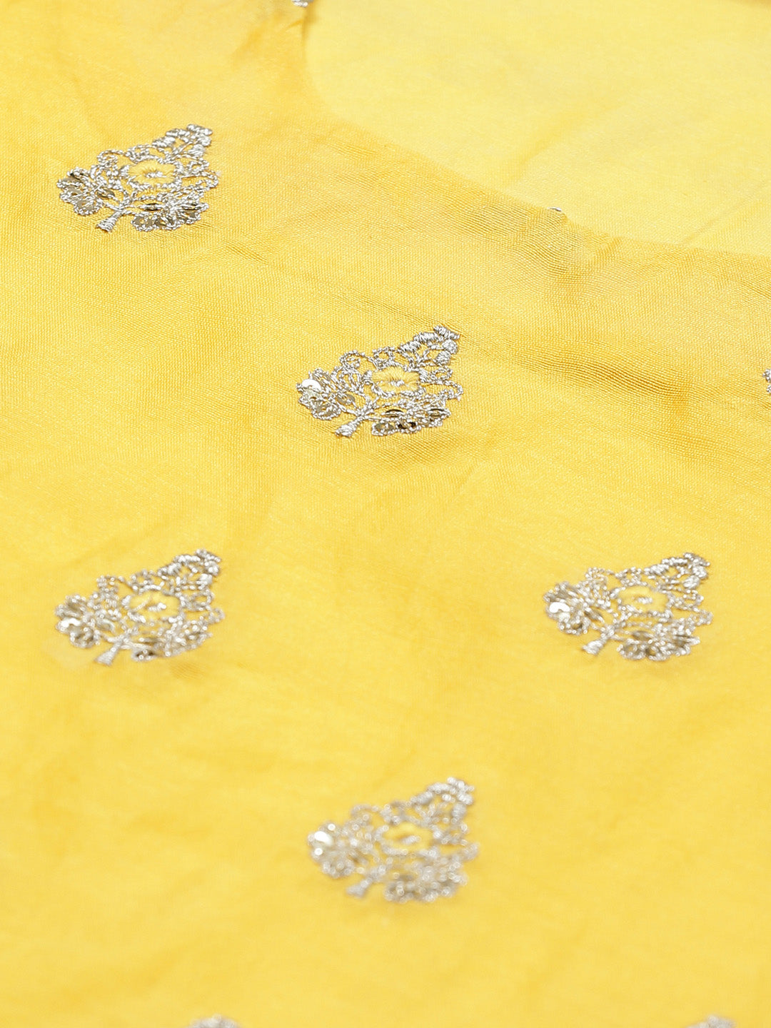 Biba Women Yellow & Silver Woven Design Layered Straight Kurta