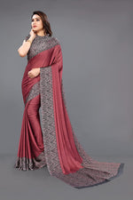 Mirchi Fashion Women's Pink & Black Printed Chiffon Saree