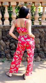 Noroke Red Floral Print Linen Red Floral Cut-out Jumpsuit