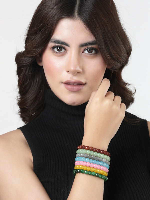 NVR Men & Women Set of 7 Artificial Beads Elasticated Bracelet - Distacart