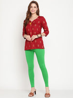 TAG 7 Women Pack of 2 Solid Leggings Product Details Pack of 2 solid ankle length legging in green and red, each has an elasticated waistband an...