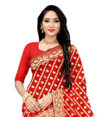 Vamika Red Weaving Banarasi Jacquard SareeAbout the Product: Work: Weaving Base Fabric: Banarasi Jacquard Fabric Saree: Banarasi Jacquard Fabri...