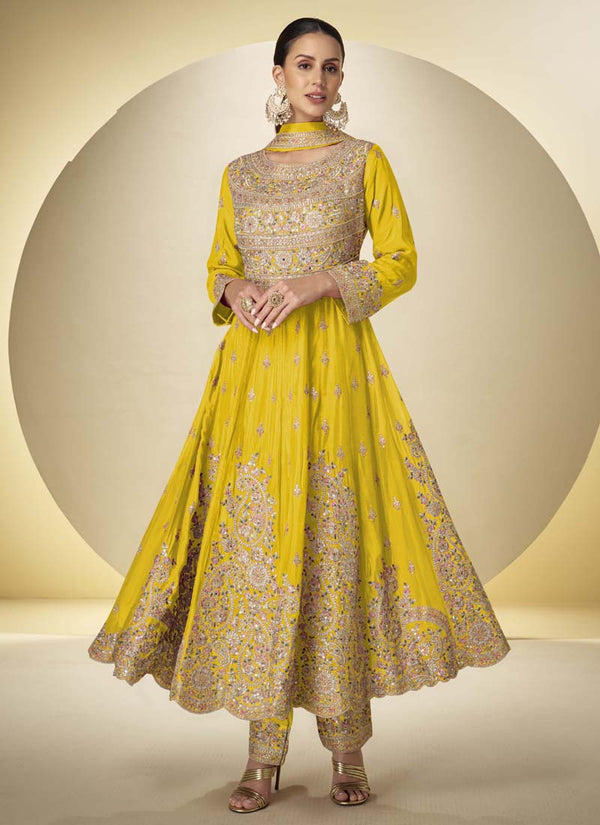 Vegaa Fashion Yellow Chinon Silk Embroidered Designer Anarkali Suit