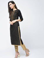 Aniyah Cotton Block Printed Black Color Straight Kurta: