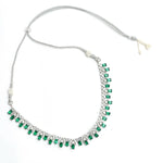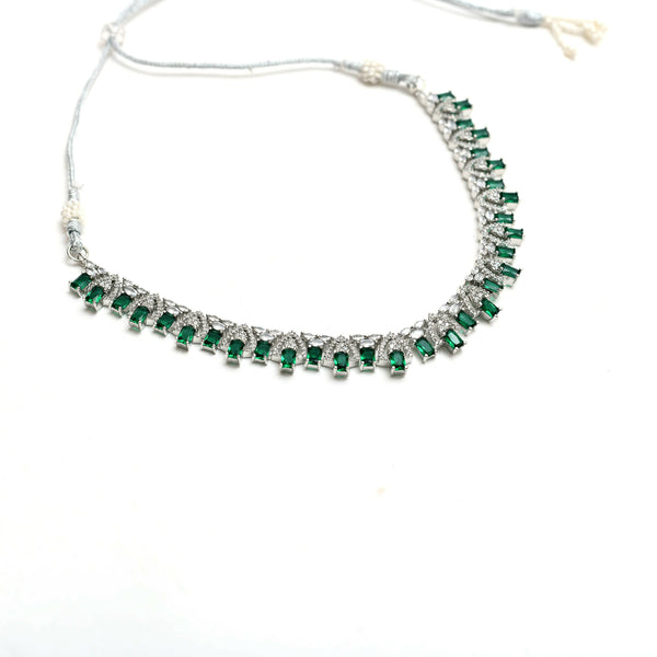 Mominos Fashion Johar Kamal Silver-Plated American Diamond Green Choker Set