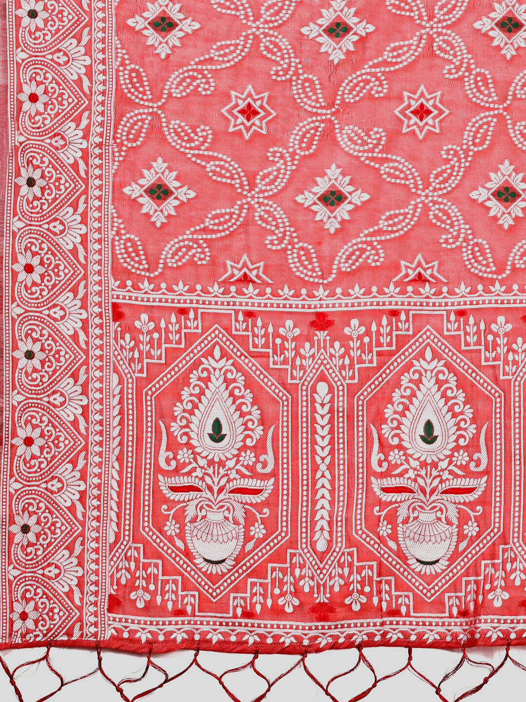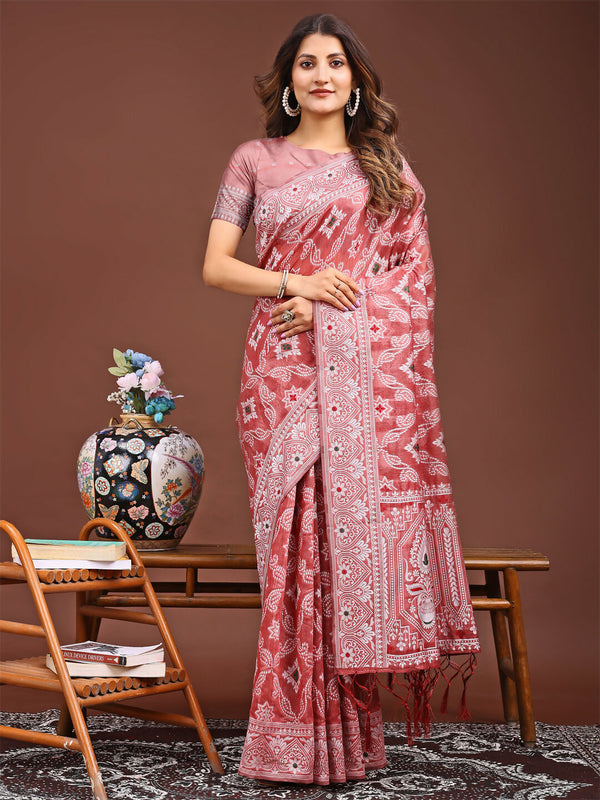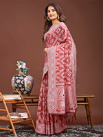 Astita Pankhuri Peach Linen Cotton Saree Color : Peach Saree Fabrics : Linen Cotton Blouse Fabrics : Linen Cotton Saree Length : 5.5 Meter Blo...