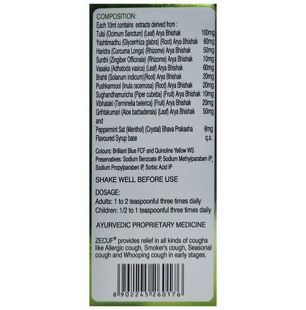 Zecuf Cough SyrupHow to use:As suggested by the expert. Legal Disclaimer: Statements regarding dietary supplements have not been evaluated by the F...