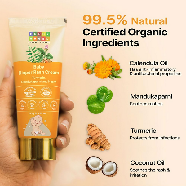 • Effective Diaper Rash Cream for Baby: Herby Angel Baby Diaper Rash Cream is specially formulated to provide quick and effective relief from diaper rash, soothing your baby’s irritated skin.