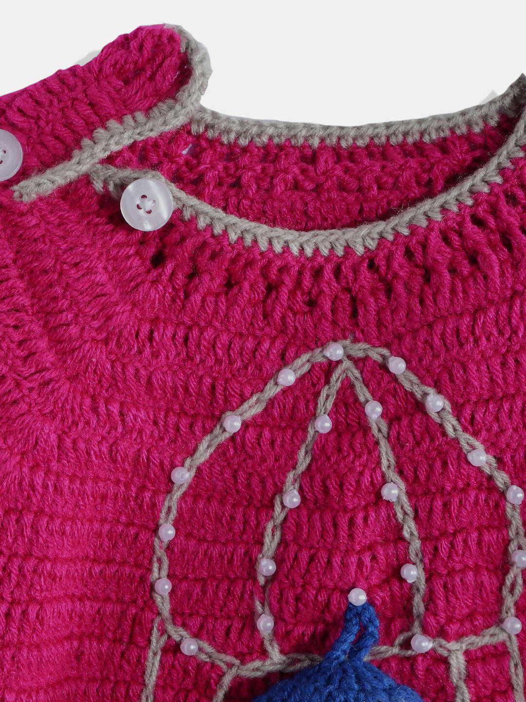 Chutput Kids Woollen Hand Knitted Full Sleeves Bird Detail Sweater - Magenta - Distacart