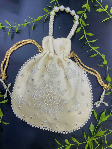 Joban Fashion Pearl Hand Work Potli Bag - Off White