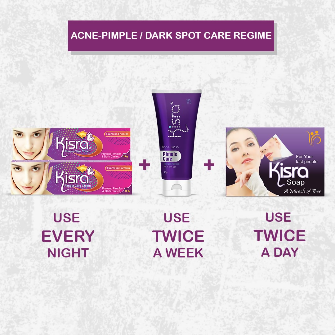Kisra Ultimate Anti Acne - Pimple & Dark Spot Care Kit Kisra pimple Soap - 75 gmKisra Pimple Cream - 15 gmAbout the product:Cream penetrates de...