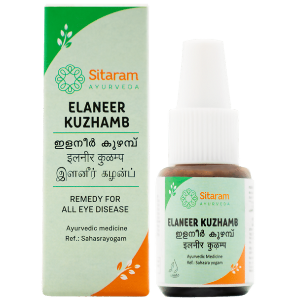 Sitaram Ayurveda Elaneer Kuzhambu Eye DropsIngredients:Daruharidra, Yashti, Nalikerajala, Saindhava(Rock salt)Dosage:1-2 drops in each eye. Elaneer...