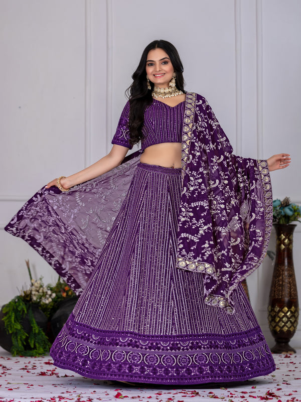 DEIANA'S Heavy Embroidery With Multi Work Lehenga Choli - purpleLehenga Heavy Embroidery With Multi Thread & Sequence Work Flair:- 3. 50 Meter ...