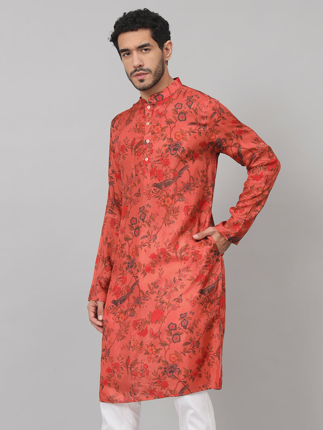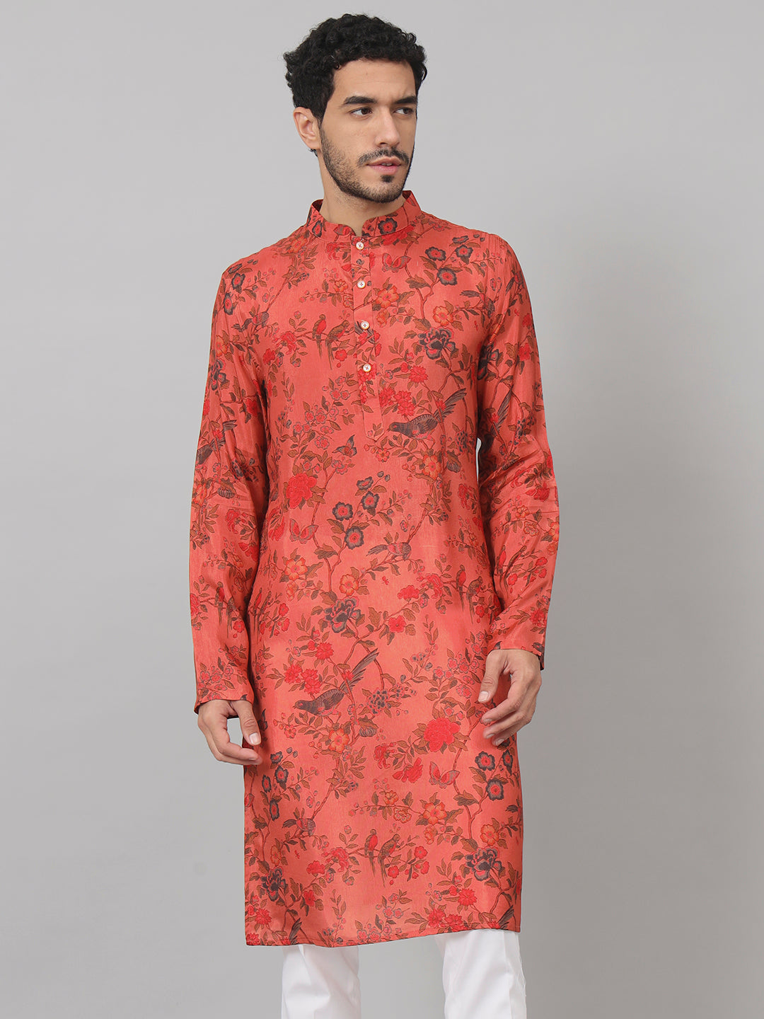 Floral Jal Print Silk Kurta by Hilo Design