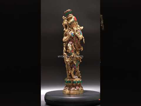 Introducing our majestic Brass Standing Krishna Idol - Divine Presence of Love and Wisdom." This captivating brass idol showcases the divine form o...
