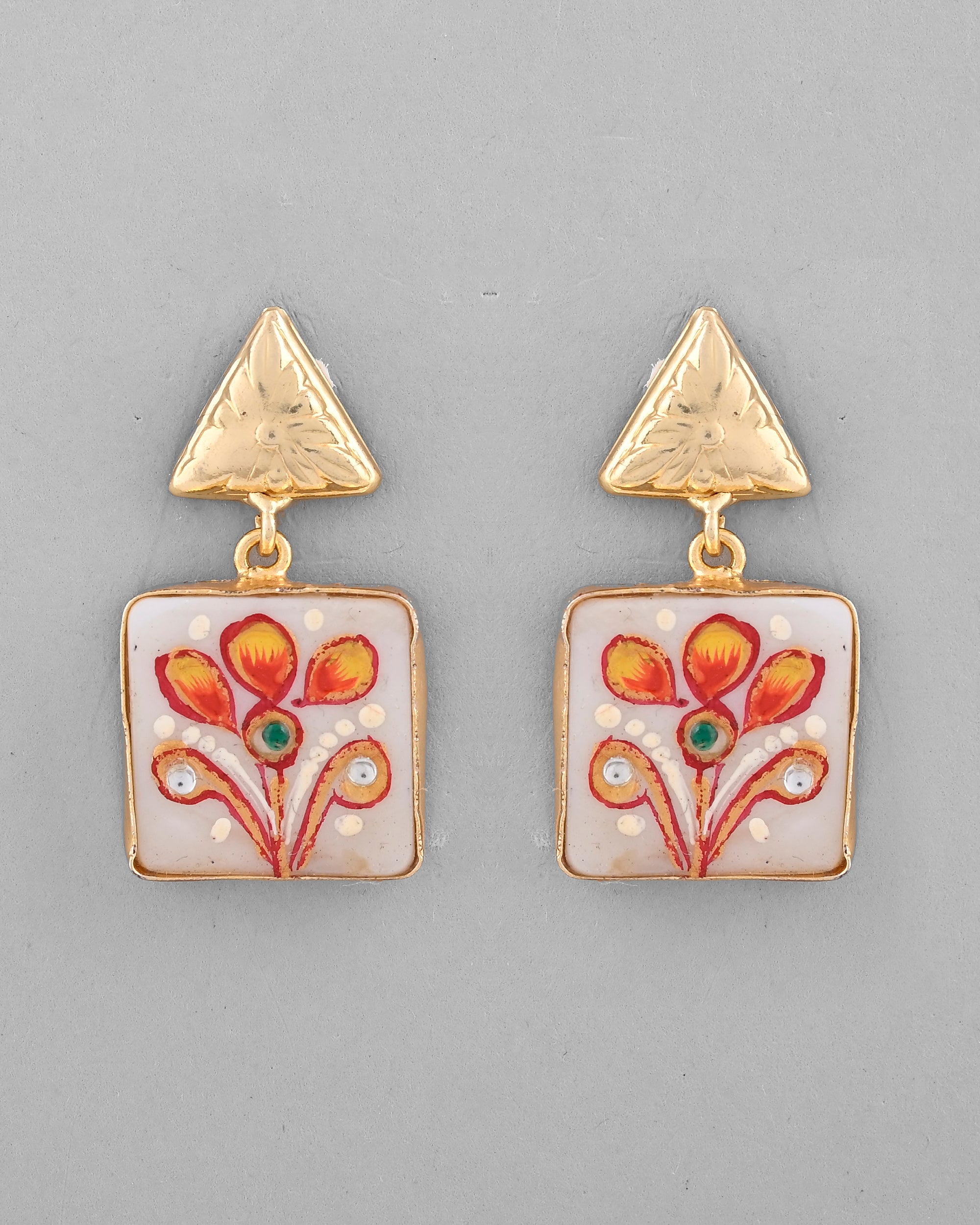 VOJ Gold-Polished Hand Painted Drop Stud Earrings - Distacart