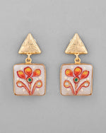 VOJ Gold-Polished Hand Painted Drop Stud Earrings