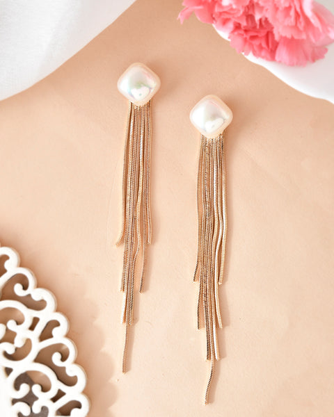 VOJ Gold-Polished Handcrafted Pearl Studded Classic Drop Earrings