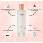 • It's Skin Collagen Nutrition range helps improve the moisture-retaining abilities of the skin. This Collagen Voluming Toner instantly cleanses, replenishes, and transforms the skin making it soft and supple.