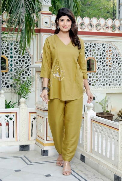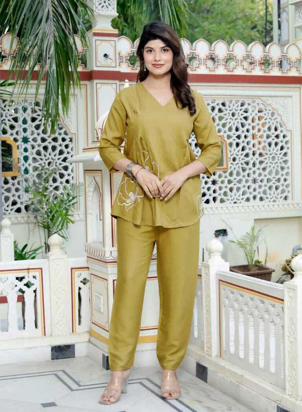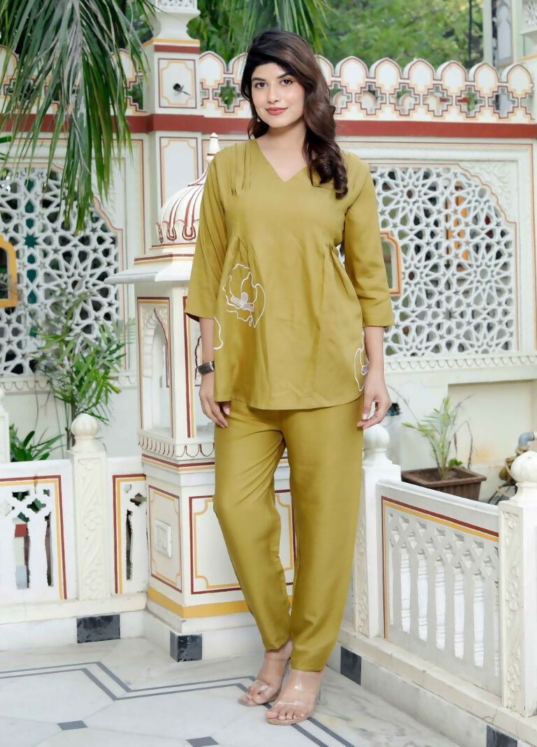 Miravan Women's Mehandi Solid Co-Ord Set