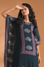 Morchari Co Ord Set With Hand Embroidery - BlueAbout the Product: Pack Contains: 1 Top 1 Pant Length of Kurta: 44 Sleeve type: Three-Quarter Sle...