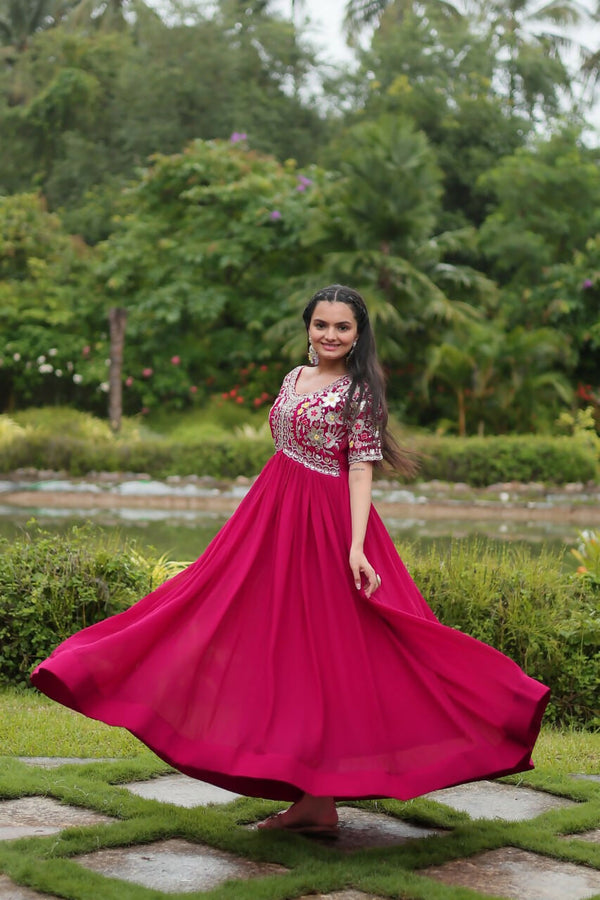 Vastranavya Faux Blooming with Embroidery Zari Sequins-work Gown - PinkDesigner Gown Is Luxury Clothing Considered To Be High Quality Made By Zari-...