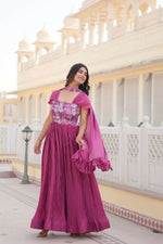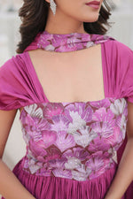 Vastranavya Position Print with Fancy Balloon Sleeves Chinnon Crush Pleating Gown with Dupatta - PinkGown-Dupatta Collections Gown:-  Fabrics &...
