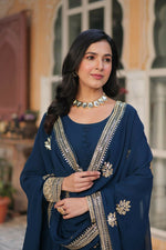 Vastranavya Premium Designer Faux Blooming with Embroidery Zari Sequins work Gown - Teal