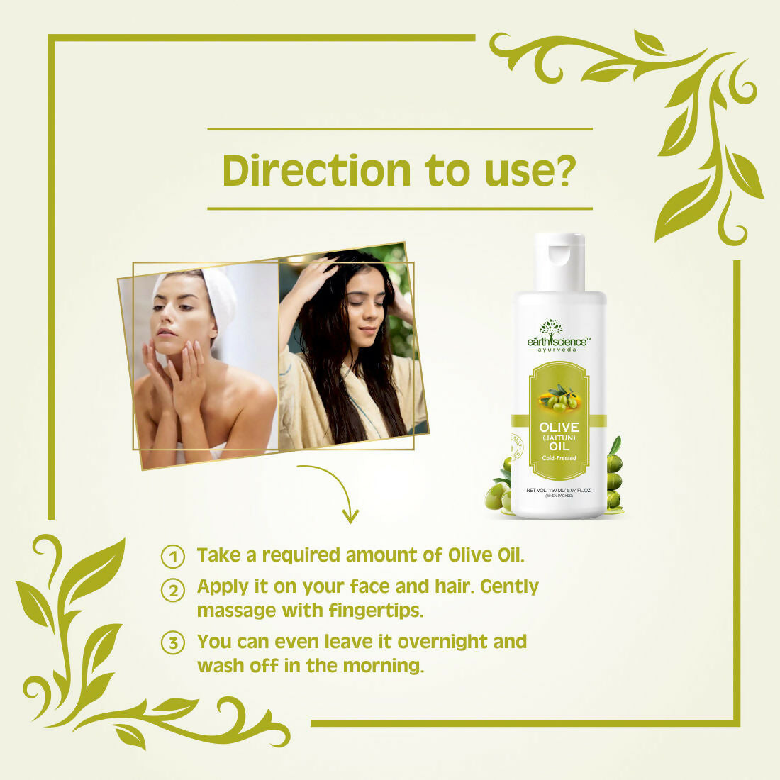 Earth Science Ayurveda 100% Pure Olive Oil Cold Pressed is a versatile oil that can be used for both skin and hair care. Here's how you can use it effectively
