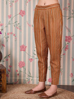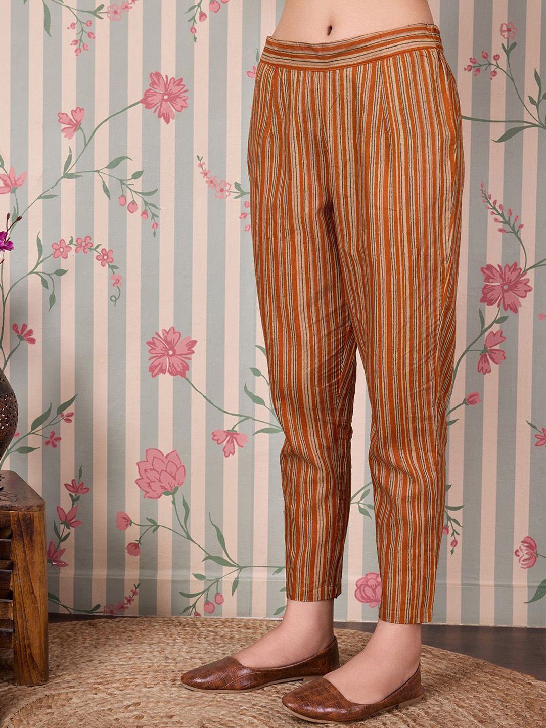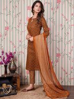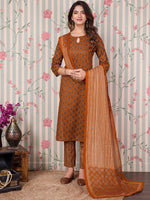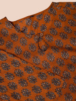 Ode by House of Pataudi Ethnic Motifs Printed Pure Cotton Kurta with Trousers & Dupatta Product Details Orange & grey printed Kurta with...