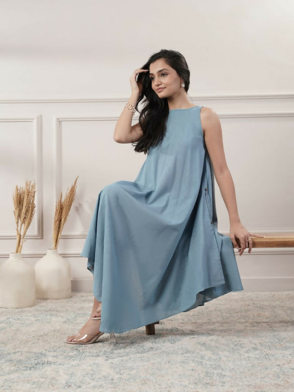 Joban Fashion Women's Smoke Blue Sleeveless Dress - 32