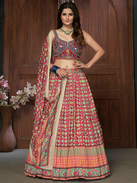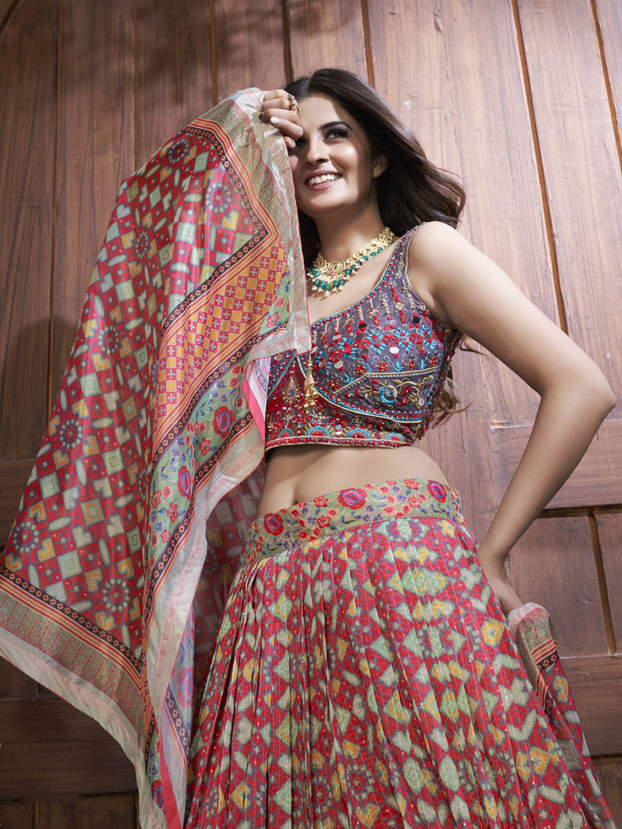 Myra Multicolor Silk and Chinon Embroidered Designer Lehenga - Distacart