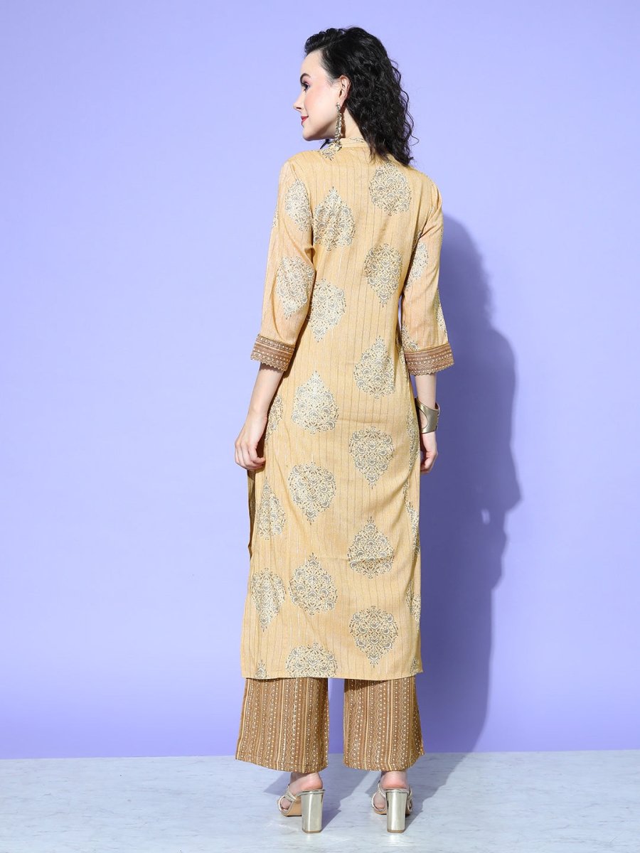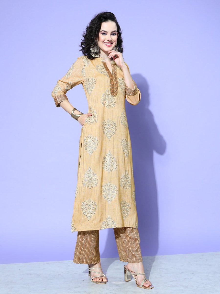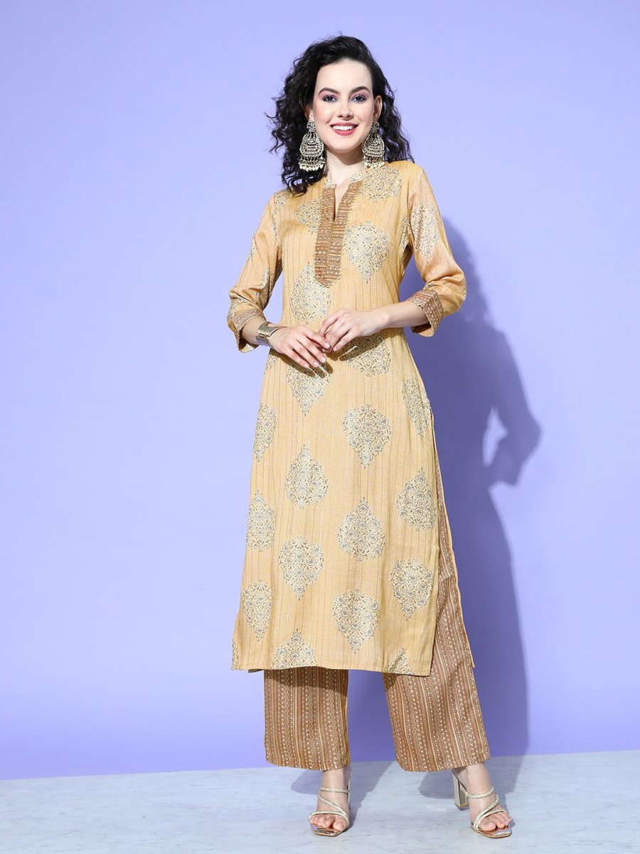 All About You Beige Floral Printed Regular Gotta Patti Liva Kurta With Palazzos Product Details Beige printed Kurta with PalazzosKurta design: ...