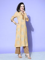 All About You Beige Floral Printed Regular Gotta Patti Liva Kurta With Palazzos