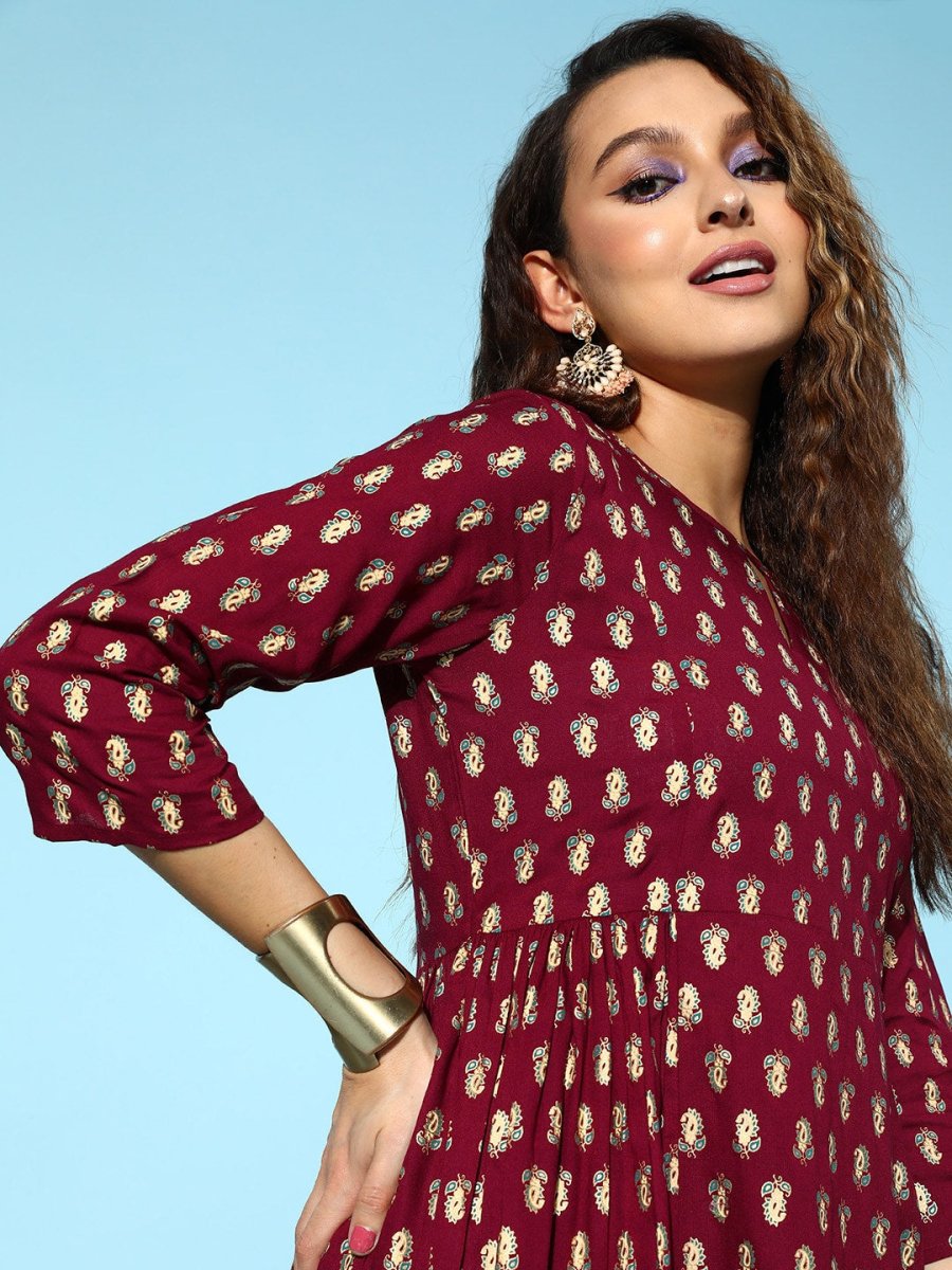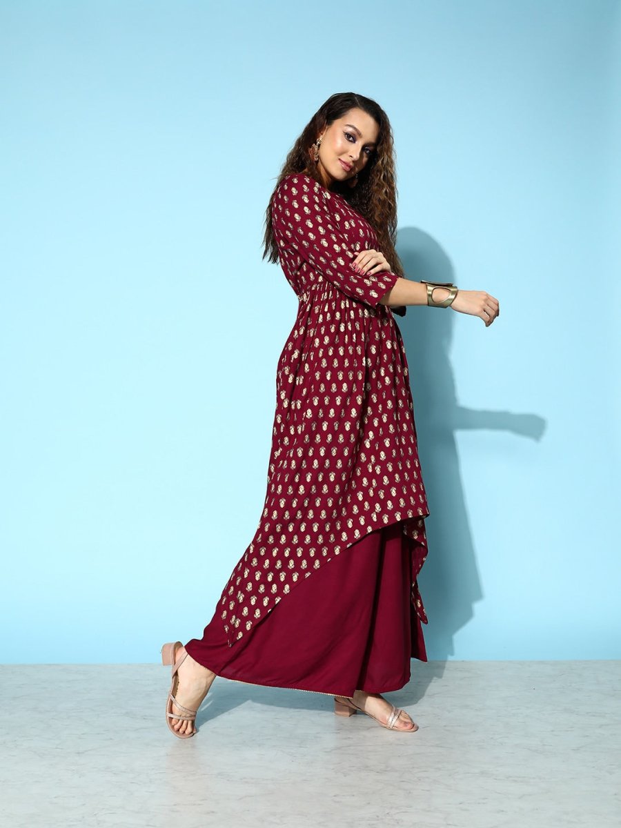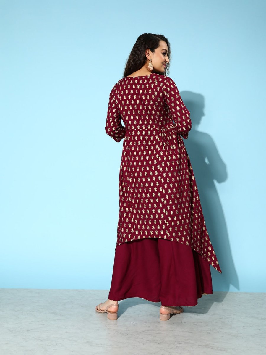All About You Carmine Maroon Printed A-Line Veere Di Wedding Kurta with Palazzos Product Details Maroon printed Kurta with Palazzos Kurta des...
