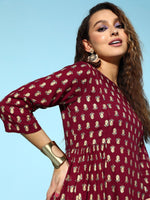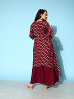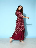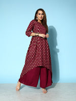 All About You Carmine Maroon Printed A-Line Veere Di Wedding Kurta with Palazzos