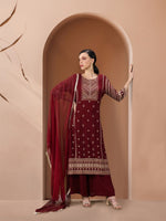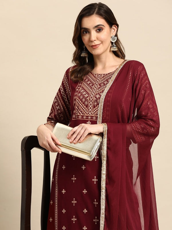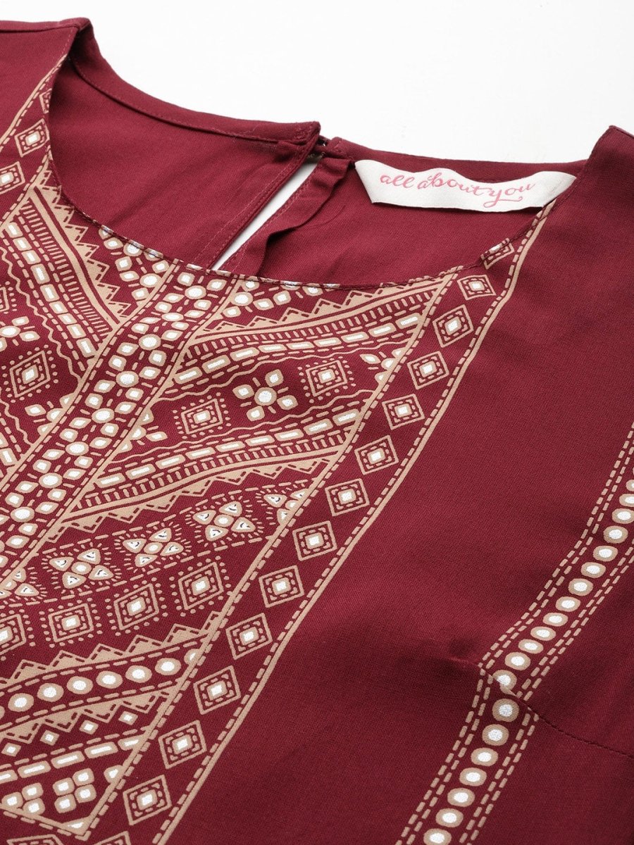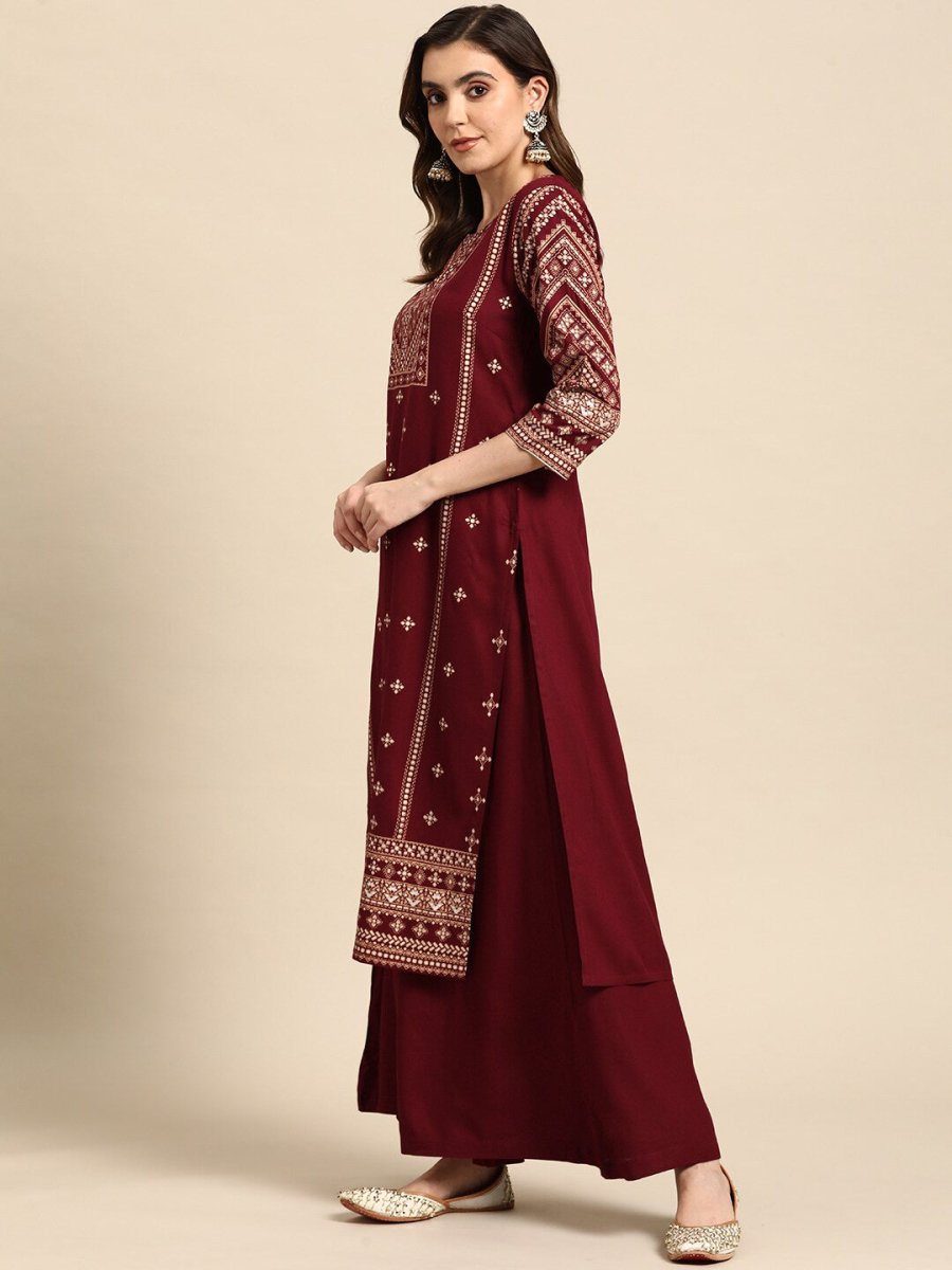 All About You Women Ethnic Motifs Printed Kurta with Palazzos & Dupatta Product Details Maroon and golden printed Kurta with PalazzosKurta d...