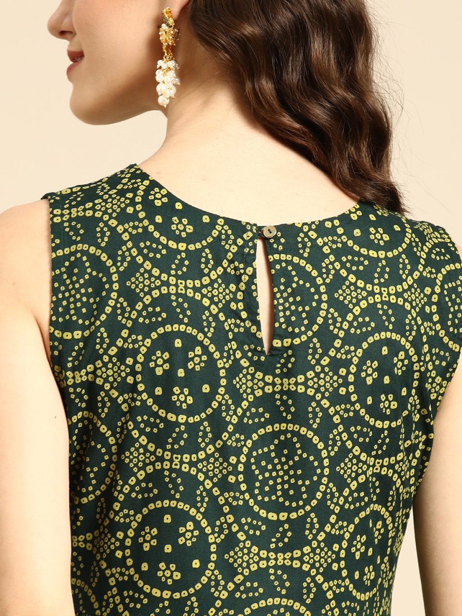 All About You Women Green Bandhani Printed Gathered Sequinned Kurti with Palazzos