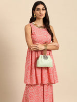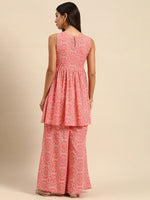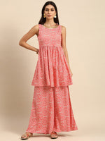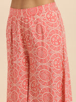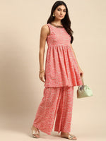Peach pink and white printed Kurti with Palazzos