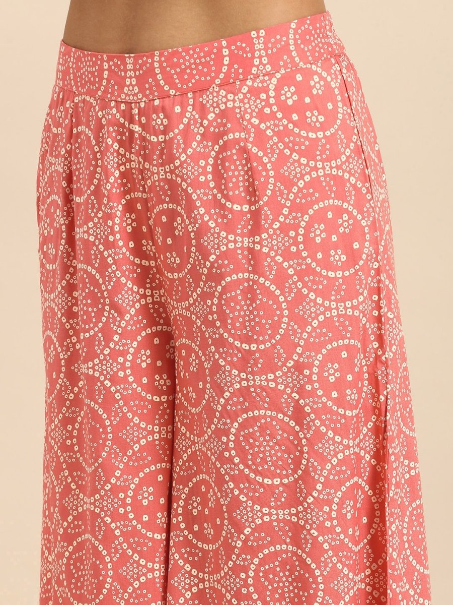 • Peach pink and white bandhani print Palazzos