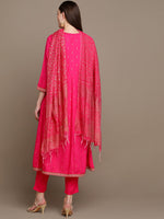 Pink printed Kurta with Trousers & dupatta
