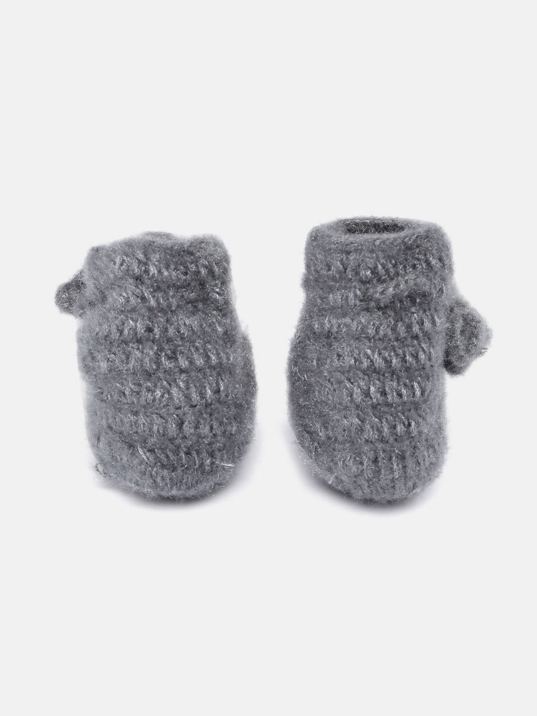 Chutput Kids Woollen Hand Knitted Flower Detailed Booties - Grey - 0-3 M