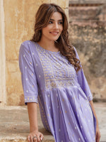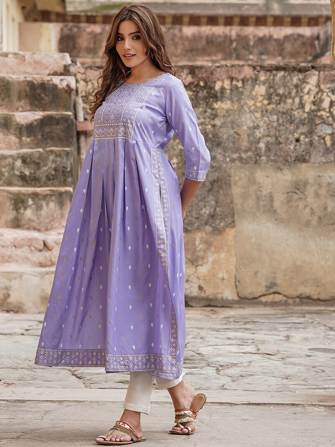 Kalini Ethnic Motif Printed High-Slit Kurta Product Details Colour: purple Ethnic motif printed Round neck Sleeveless, regular sleeves A-line s...