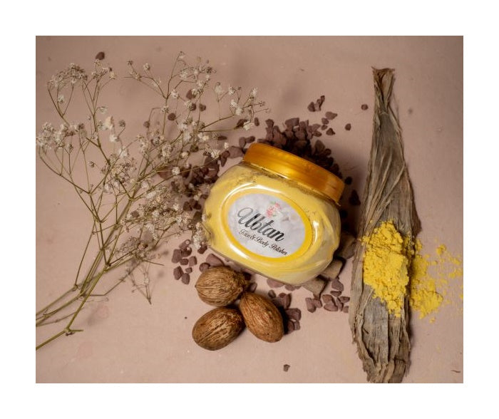 Ubtan is an age old remedy for glowing skin used by bride-to-be for glowing skin. Duh ubtan has deep exfoliating effects which helps to scrub off impurities embedded in the skin with goodness of cicer arietinum, buchanania latifola, ervum lens, phaseolus mungo, curcuma aromatica, cinnamonum camphora, oryza sativa, almond etc.