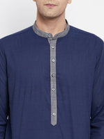 Even Apparels Blue Pure Cotton Men's Kurta With Contrast Collar And Placket - XS