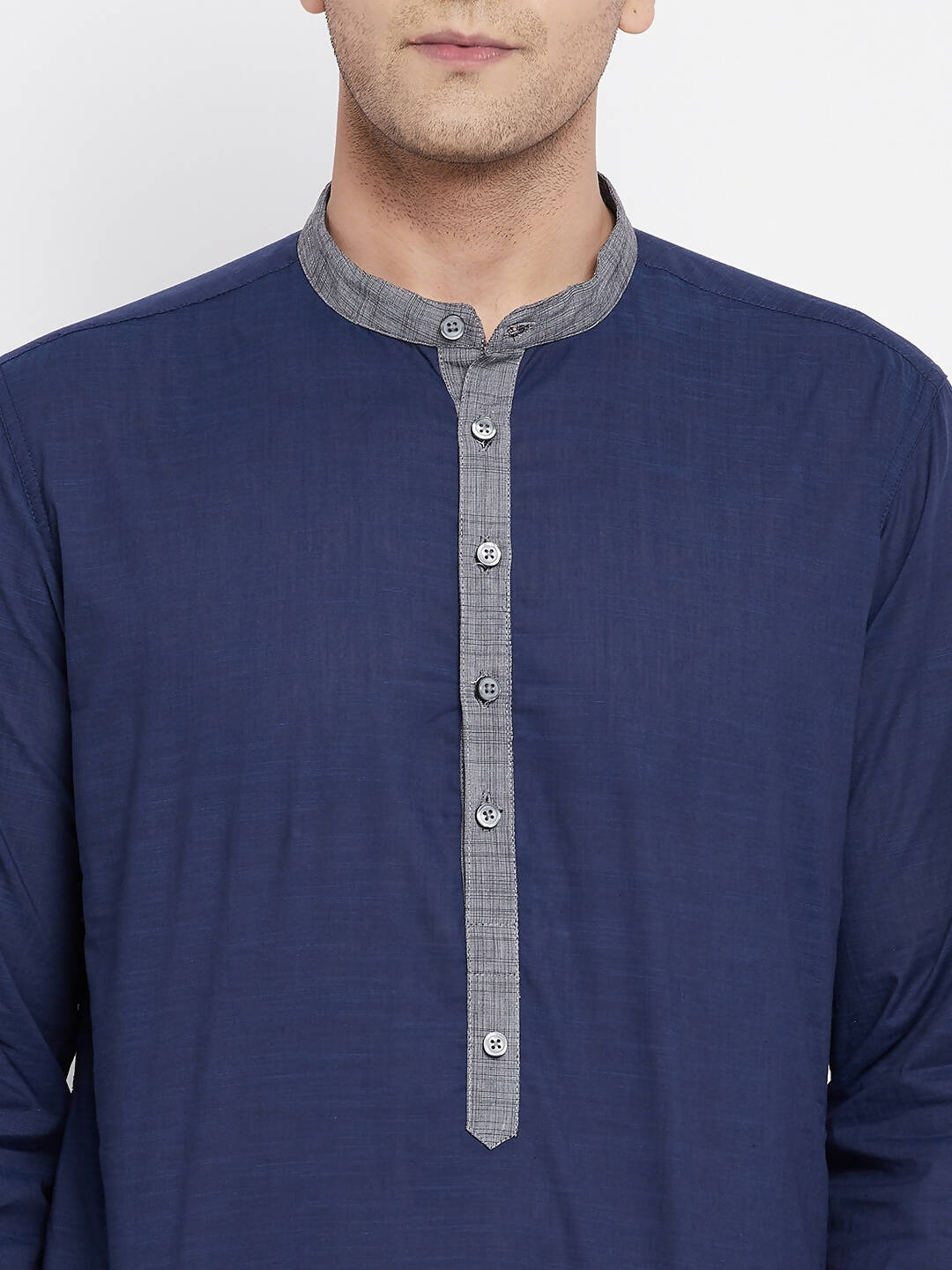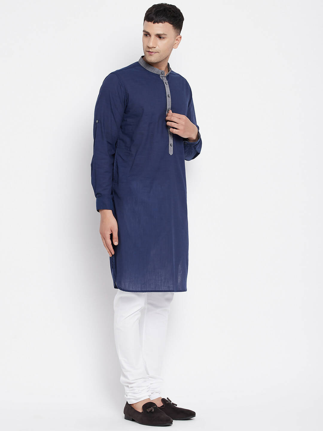 Even Apparels Blue Pure Cotton Men's Kurta With Contrast Collar And Placket - Distacart