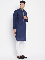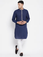 Even Apparels Blue Pure Cotton Men's Kurta With Contrast Collar And Placket