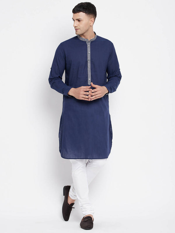 Even Apparels Blue Pure Cotton Men's Kurta With Contrast Collar And PlacketKurta has a contrast collar and contrast cuffs with buttons. Colour: Bl...