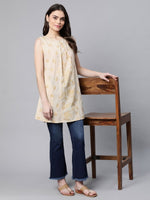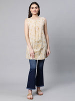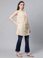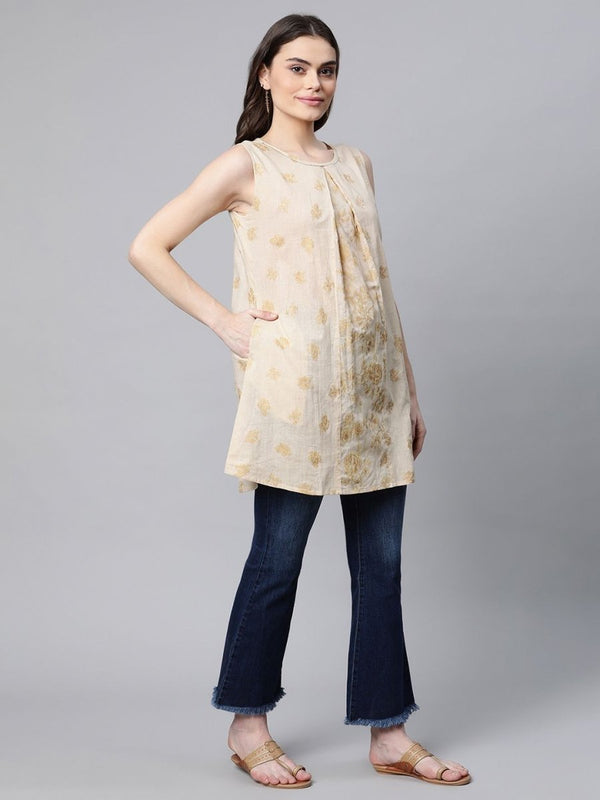 Ahalyaa Women Beige Pure Cotton Floral Printed Tunic - S