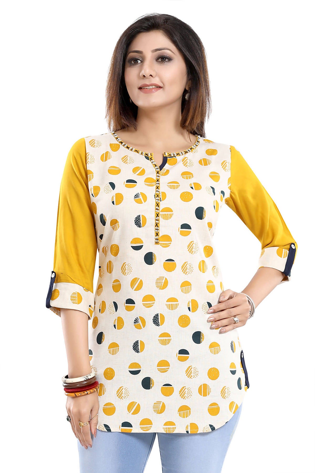 Snehal Creations Cotton Printed Apple-Cut Short Tunic - S
